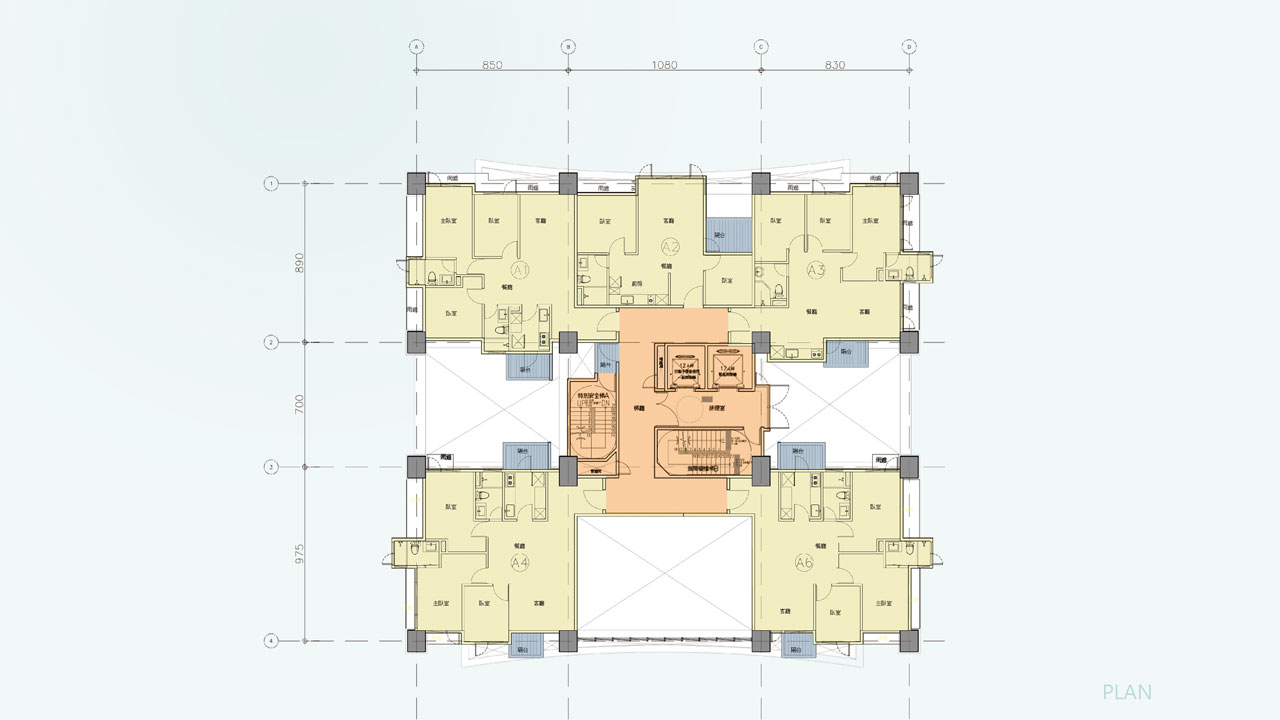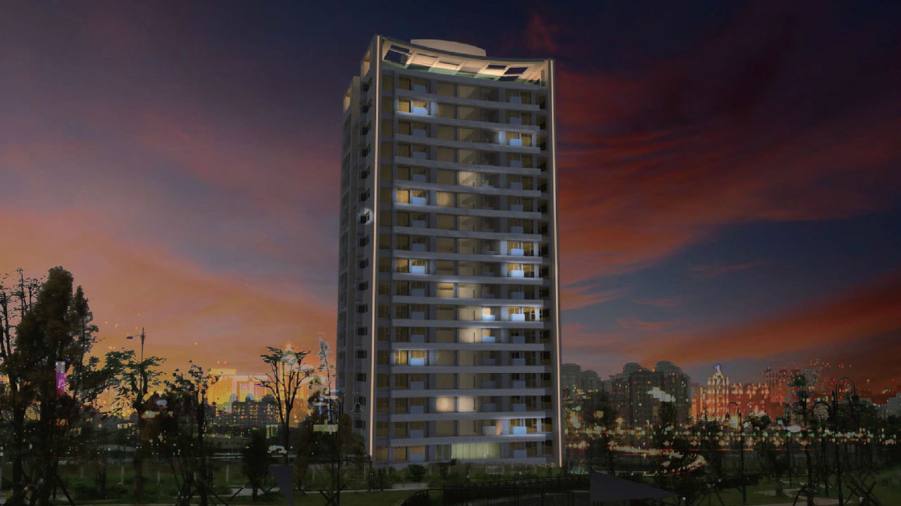 設計上將集合住宅量體拉高,縮小建築範圍,留出更多空間至景觀,同時以服務核為中心,將建築量體分為兩側,增加建築通風。在建築配置上以南北側為主要客廳及臥室開窗方向,開放通透引入綠意及自然採光,東西側為防止日曬,減少開口。