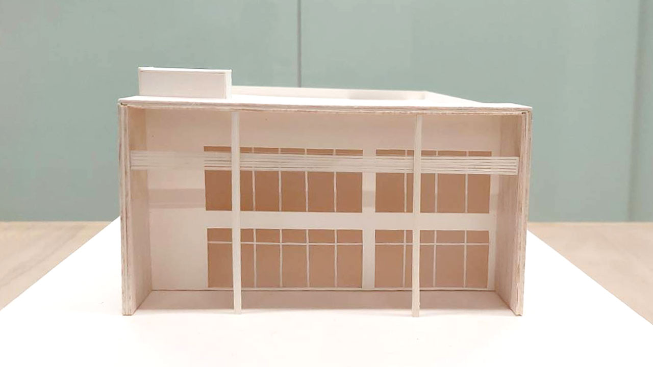 相較於多以厚重石材建築之傳統銀行,本案之設計僅採傳統語彙作為"穩重、安定"之概念傳達,但以現代性材料如面磚、清水模、玻璃與圓形鋼柱等予人輕量化現代感受,突破材料限制,達到輕與重、創新與傳統之間的平衡。