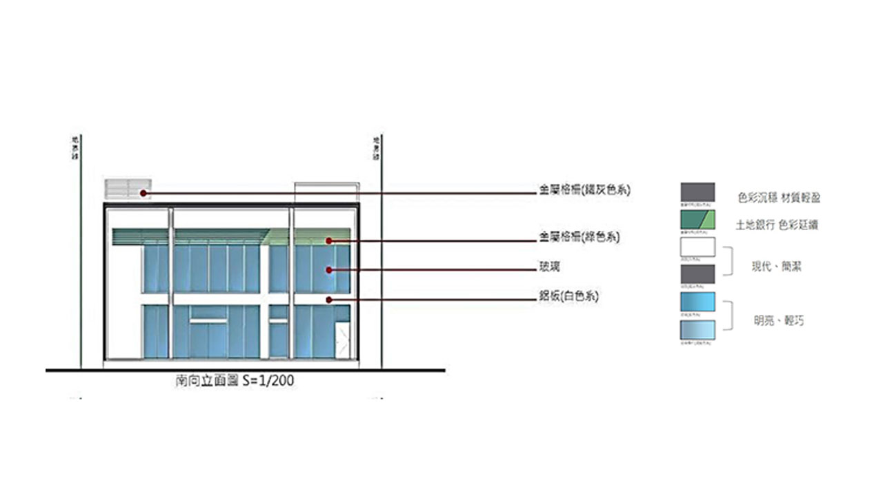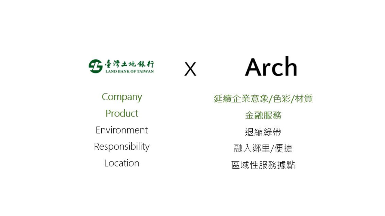 本案由土地銀行前身日治時期之"勸業銀行"作為概念的起點,擷取傳統柱廊與頂蓋之建築語彙,傳承銀行建築符號意象,進而轉換以現代手法呈現,彰顯企業永續與邁向未來之精神。