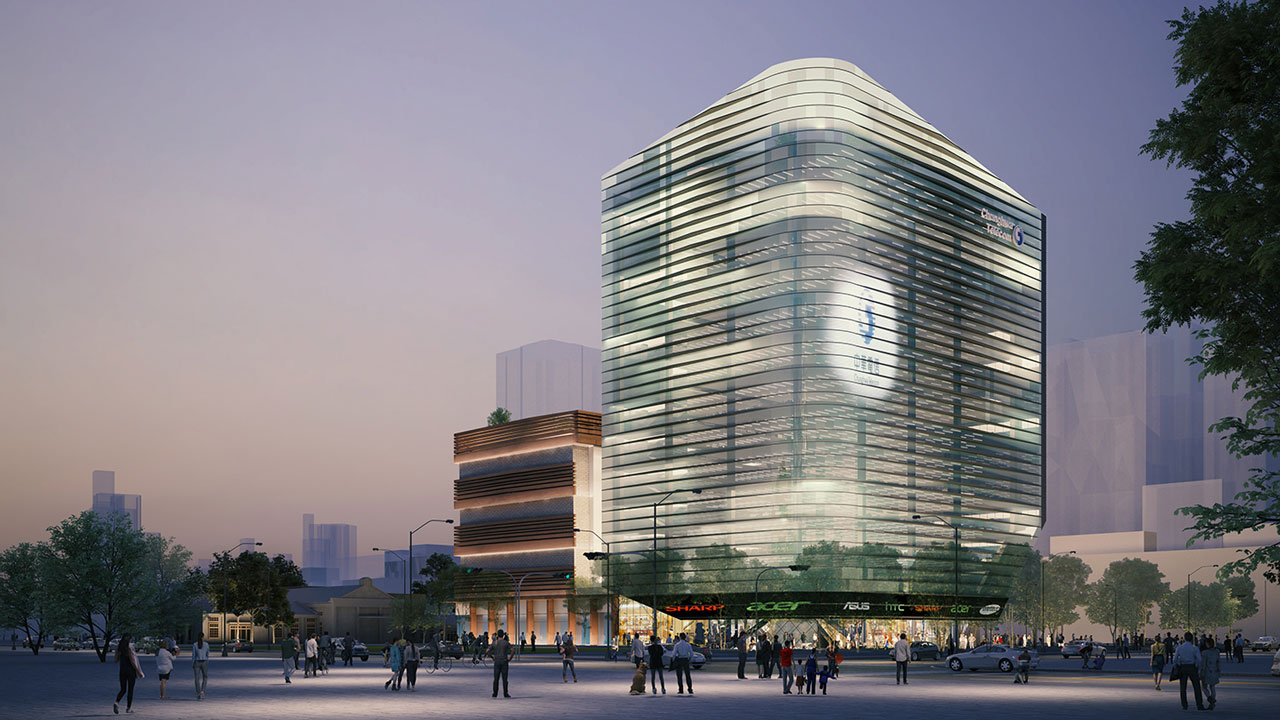 中華電信所提供之電信服務最高價值在於讓人與人”溝通”。建築立面皮層承載訊息以媒體訊息展示結合燈光效果,表達簡潔與流暢之科技現代感,象徵中華電信企業形象中訊息精確及溝通服務意象,建築表情開始流動。從中華電信企業形象:便捷、迅速、未來感,轉化為媒體快速傳遞的線條表現形式,建築表情曲線串聯起人與人的溝通。